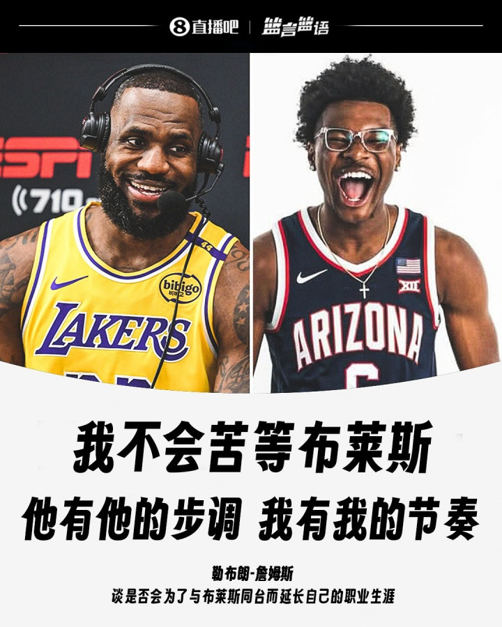 当被问及是否会为了与小女儿布莱斯沿途在NBA打球而延伸我方的办事生存时,詹姆斯说谈:“我不会苦等布莱斯。我不知谈他的时分霸术若何,他当今如故是个孤独的大小伙子了。至于后续发展,本年也好来岁也罢,顺其当然吧。他有他的措施,我有我的节律——说着实的,这两条时分线偶然合拍。”