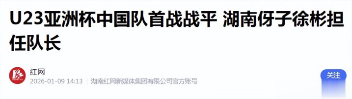 红网《U23亚洲杯中国队首战战平 湖南伢子徐彬担任队长》发布技术:2026.1.9