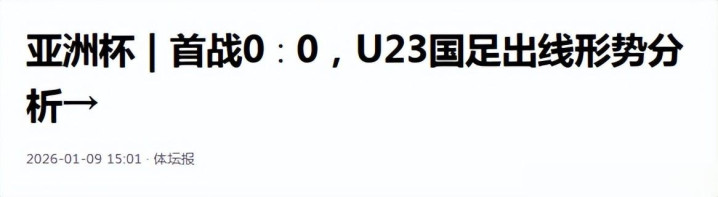 体坛报《亚洲杯 | 首战0∶0,U23国足出线时势分析→》发布技术:2026.1.9