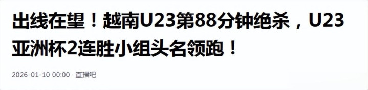 直播吧《出线在望!越南U23第88分钟绝杀,U23亚洲杯2连胜小组头名领跑!》发布技术:2026.1.10
