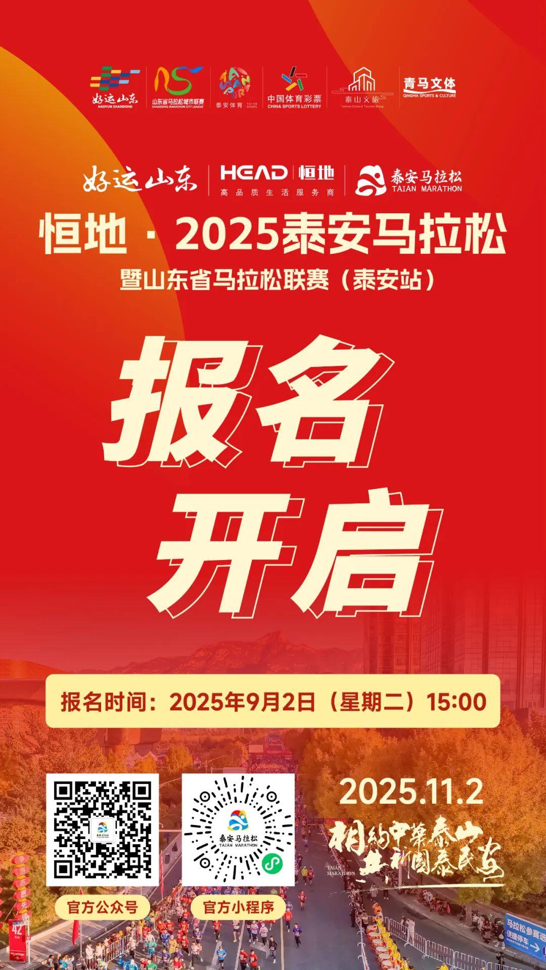 金秋奔走盛宴行将启幕!全球期待已久的"好运山东恒地·2025泰安马拉松暨山东省马拉松联赛(泰安站)"将于2025年9月2日(星期二)15:00细腻开启报名!这是一场穿越千年文假名城的奔走之约,更是一次挑战自我的秋日征途。