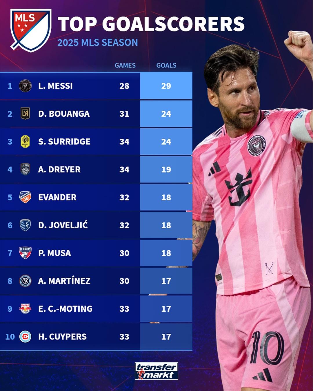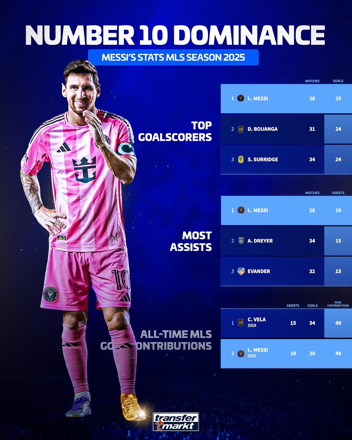 虎扑10月21日讯 德转数据统计,球王梅西以金靴奖得主身份轨则好意思职联老例赛征途。